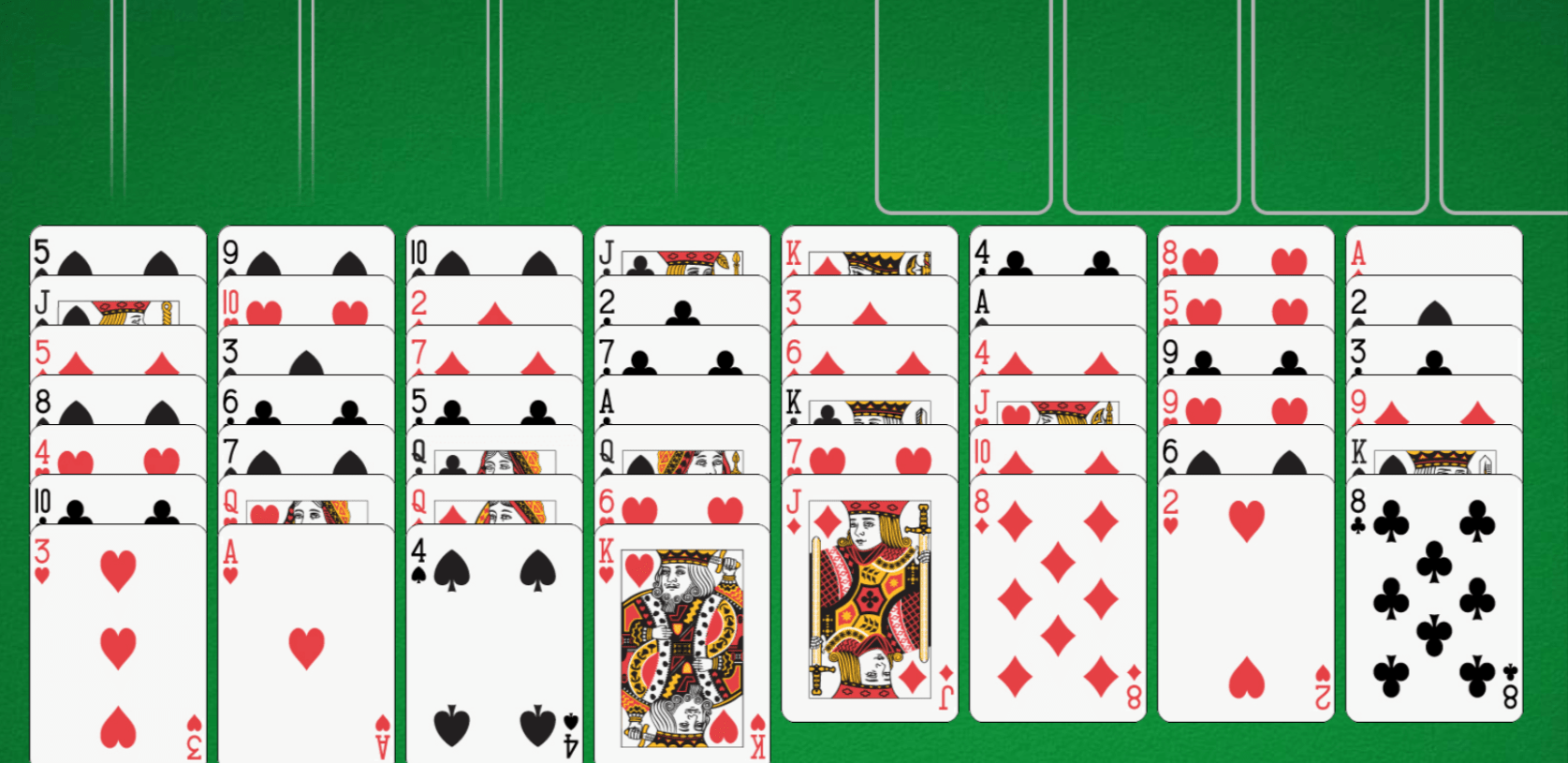FreeCell is a card game based off of solitaire and played with a standard 52-card deck. Unlike most forms of solitaire, nearly every FreeCell is unbeatable if you use strategy and think ahead. The goal is simple: place all the cards into the foundation piles by suit and in ascending order. Yet, simplicity ends there.